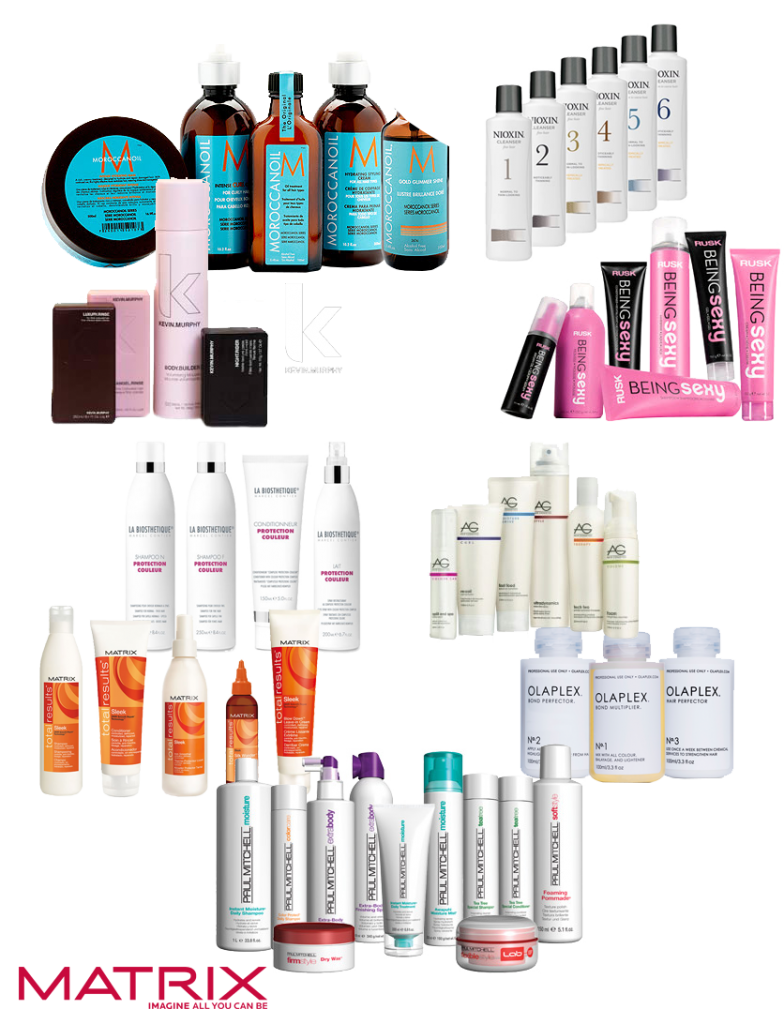 • Moroccan Oil • Matrix • Kevin Murphy • Paul Mitchell •